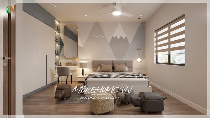 Một không gian phòng ngủ được thiết kế theo ý tưởng và sở thích của mình thì thật tuyệt và chỉ cần đưa ra ý tưởng còn mọi thứ đã được các kiến trúc sư Morehome sẵn sàng để mang tới không gian đúng như yêu cầu của gia chủ