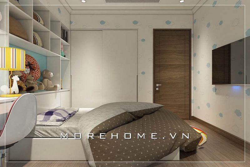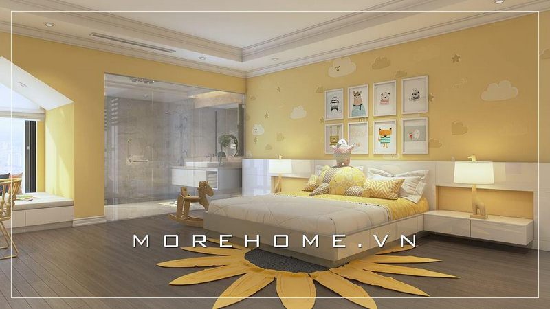 Mẫu giường ngủ trẻ em hiện đại, tone màu trắng chủ đạo cùng màu với nội thất khác trong căn phòng tạo sự liền mạch cho cả không gian căn phòng