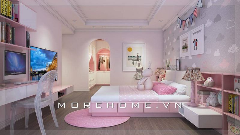 Mẫu giường ngủ bé gái hiện đại với lối thiết kế cách điệu ấn tượng và nổi bật
