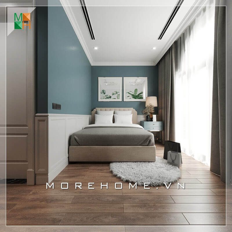 Trang trí nội thất phòng ngủ master với tone màu trắng chủ đạo, không quá nổi bật nhưng vẫn mang lại sức hút thêm cho không gian