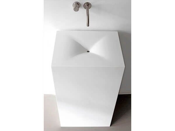 Chậu rửa lavabo màu trắng được làm từ đá nhân tạo với kiểu dáng độc đáo và giá trị thẩm mỹ cao.
