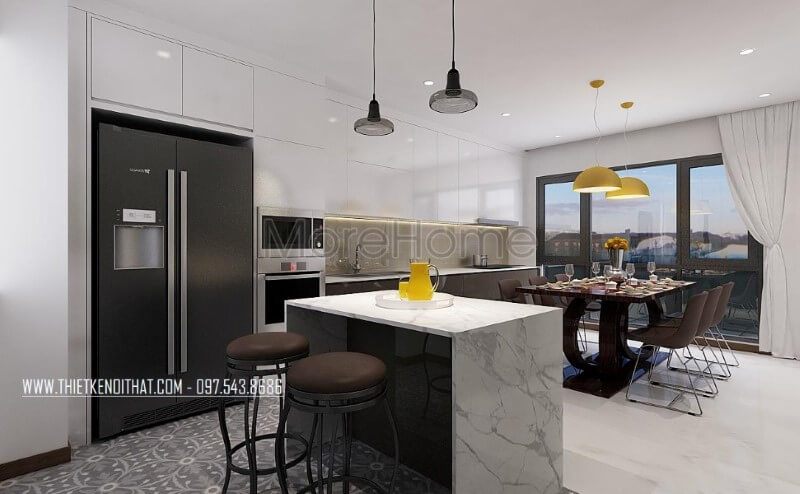 Thay vì những bức tường ngăn cách chật chội, các gia đình ngày càng ưa chuộng việc kết hợp phòng khách, bếp và ăn thành một không gian liền mạch. Điều này không chỉ giúp tối ưu hóa diện tích mà còn mang lại cảm giác gần gũi hơn giữa các thành viên trong gia đình. Các gam màu sáng cùng với ánh sáng tự nhiên được khai thác triệt để càng làm cho không gian trở nên rộng rãi và thoải mái hơn.