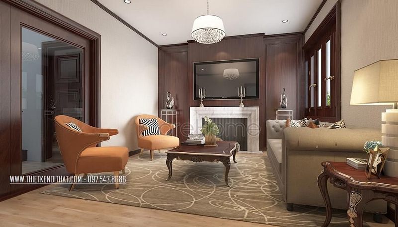 Không gian phòng khách của chúng ta trông rất sang trọng và đẳng cấp với bàn ghế sofa sử dụng chất liệu bàn là gỗ tự nhiên cao cấp và ghế sofa bọc da chân ghế. Tất cả đều tạo nên một không gian phòng khách tráng lệ.